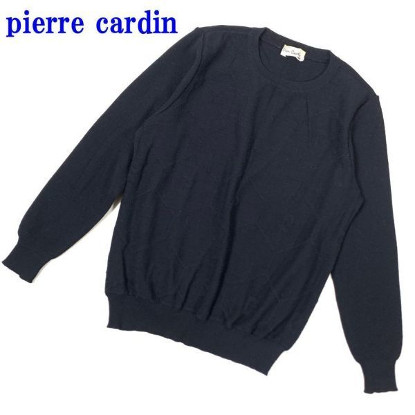 - ピエールカルダン ウール100%カジュアル長袖リブニットブラックpierre cardin フロントデザイン有 シンプル 11 C7703