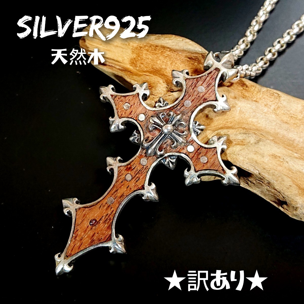 > 5836 SILVER925★訳あり★ウッド クロストップ 大 シルバー925 天然木 十字架 ローズウッド ユリ リリー 百合 ユニセックス レア 希少 茶系