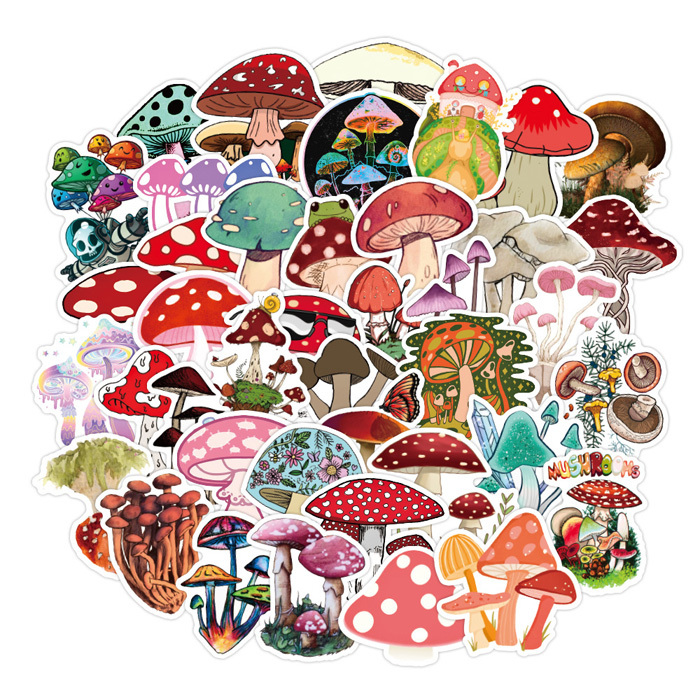 - 50枚 ステッカー きのこ 防水 耐水 シール 詰め合わせ 0435
