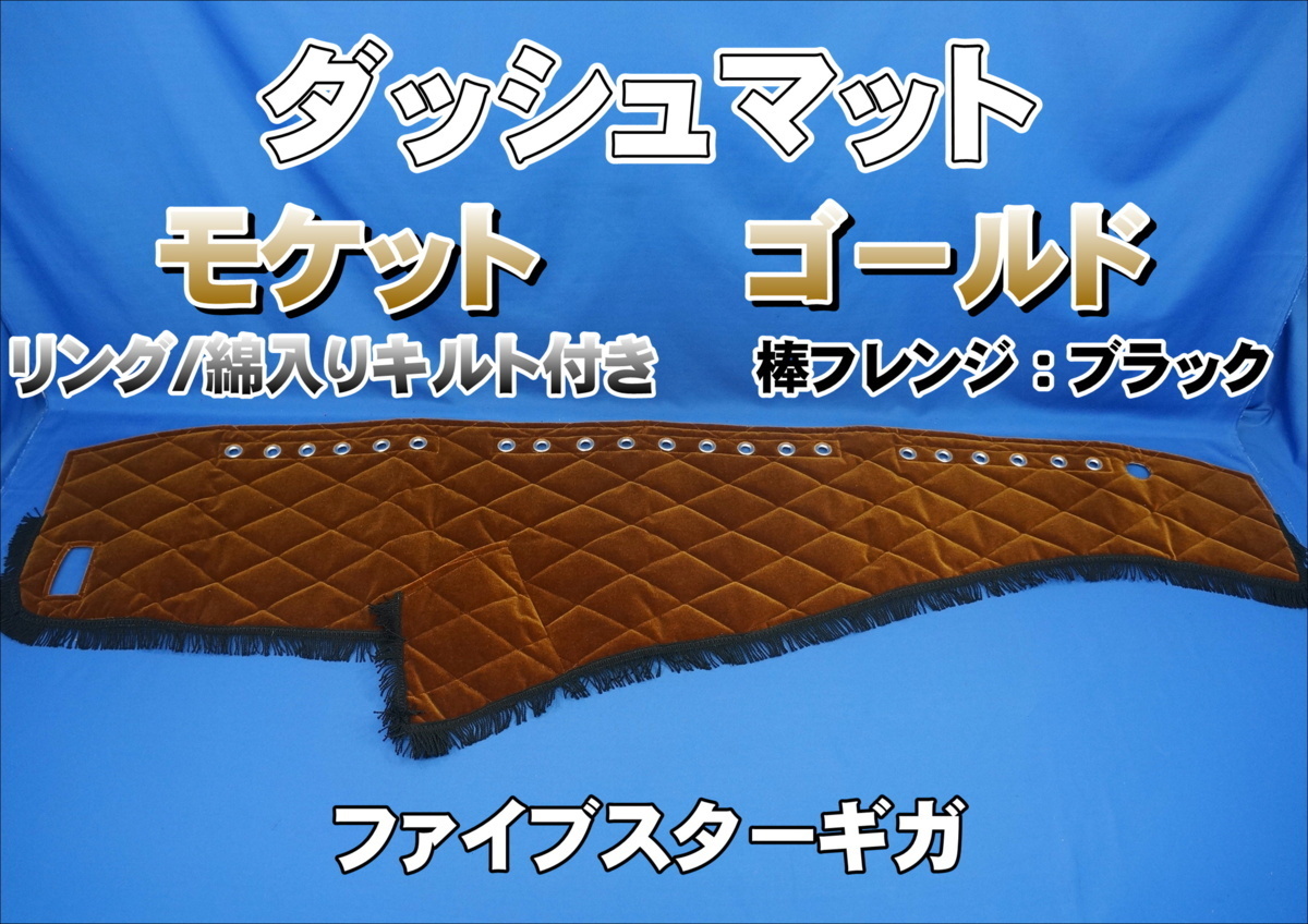 - ファイブスターギガ用 モケット ダッシュマット 綿入りキルト/リング付き ゴールド/棒フレンジ5cmブラック