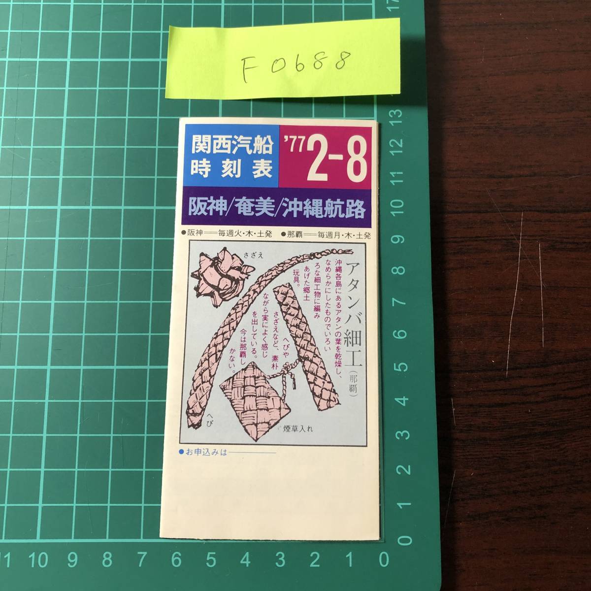 - 関西汽船 阪神/奄美/沖縄航路 時刻・運賃表 昭和52年頃 【F0688】