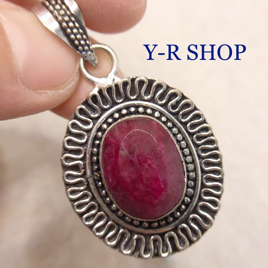 - 天然石★ルビーのアンティーク調ペンダントトップ ★レディースネックレスシルバー 925刻印カラーストーン エスニックインドジュエリー新品
