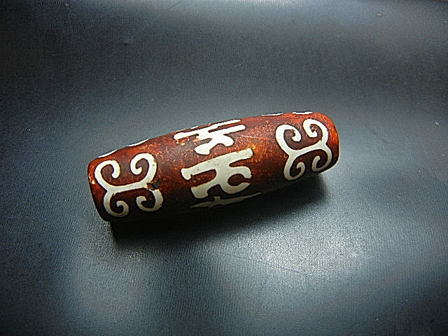 - ★西蔵至純天珠★XT9109 朱砂 梵文佛字天珠 特上級 39mm入手難