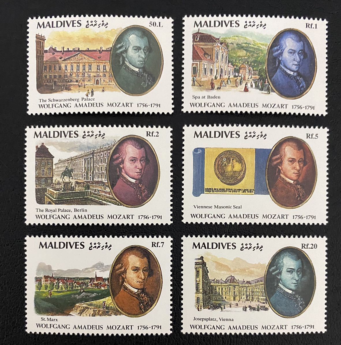 - モルジブ モーツァルト 音楽 バーデンの温泉 王宮 6種完 未使用 NH