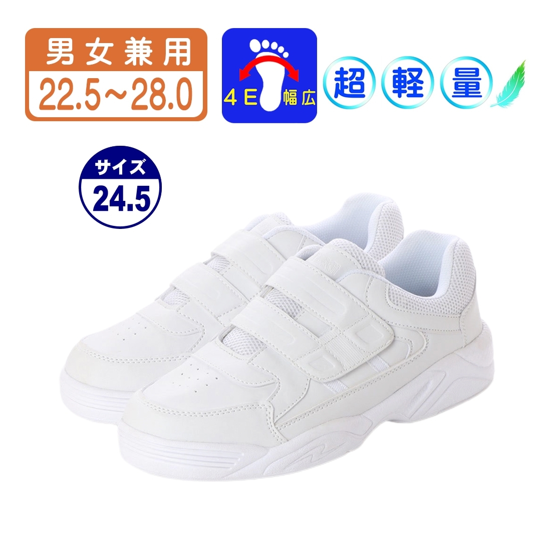 - ★新品・人気★【18553-wht-245】超軽量スニーカー ベルクロタイプ運動靴 コードシューズ 4E幅広設計 男女兼用