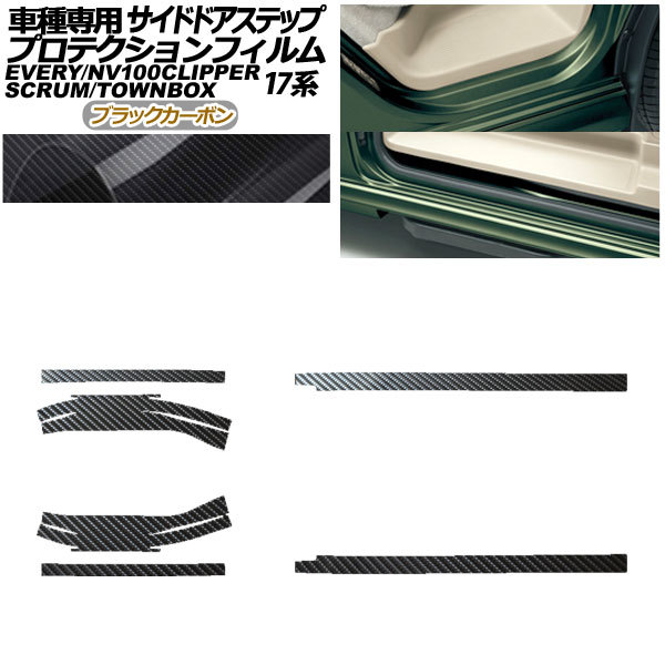 - プロテクションフィルム サイドドアステップ 日産 NV100クリッパー/リオ DR17V/W 2015年03月~ ブラックカーボン 入数:1セット(6枚)