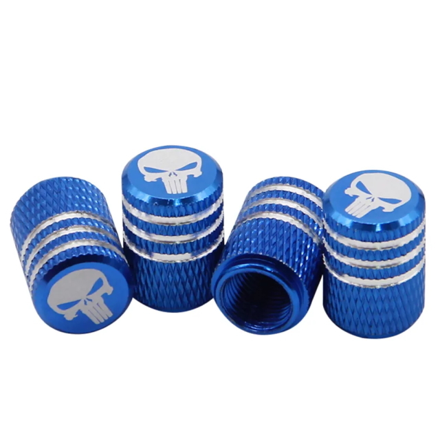 - PFM スカルデザインタイヤバルブキャップ [ブルー]4個セットアルミ合金タイヤバルブキャップ ドクロデザイン 車/バイク/自転車等のカスタム