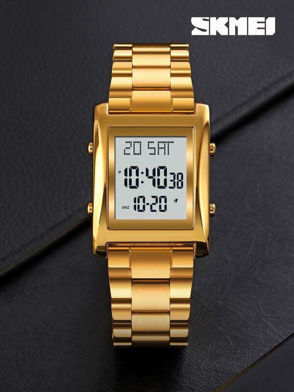 - 腕時計 メンズ デジタル 1個 男性 ゴールド ステンレス鋼 ストラップ ビジネス カレンダー アラーム 耐水 四角形 ダイヤル