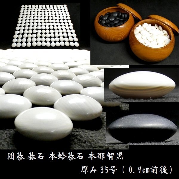 【 恵 #0901 】 肉厚 囲碁 碁石 本蛤碁石 本那智黒 厚み 35号 ( 0.9cm前後)