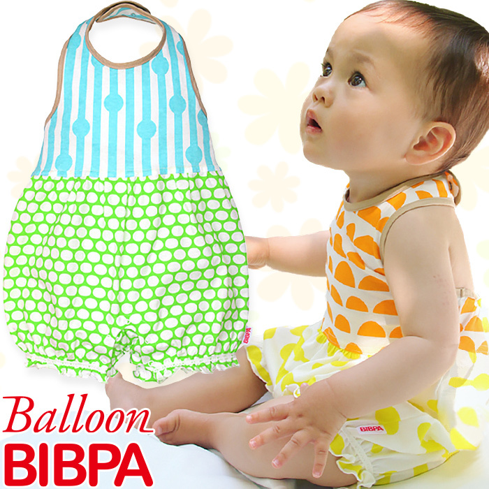> かわいいベビー服■アロハロハ バルーンビブパ DRIP&BEAN ブルーxグリーン 70~90cm◆BIBPA 赤ちゃん ロンパース ビブ パンツ 子供服