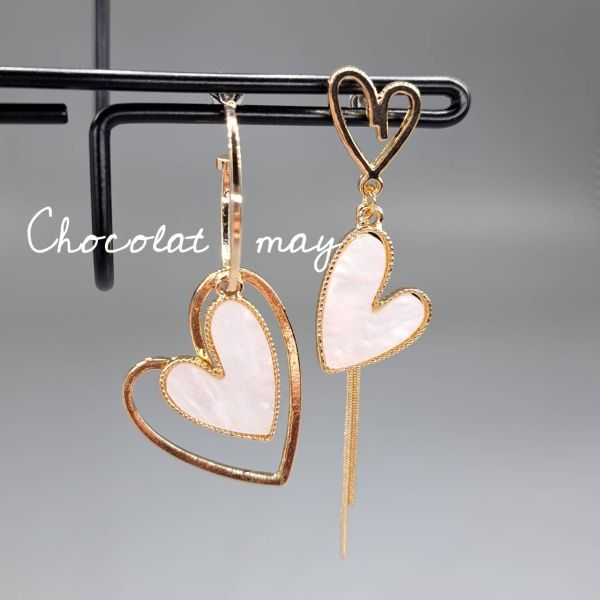 - ピアス ハート ゴールド ホワイト ゴージャス エレガント ガーリー パーティー ファッション 小物