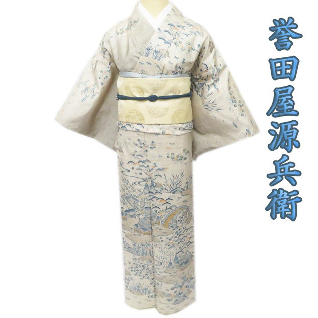 - 【FINAL PRICE】 ★きもの北條★ 特選 単衣 誉田屋源兵衛 ぜんまい紬 茶屋辻文様 トール 白茶系色 着物 A760-12 L 【中古】