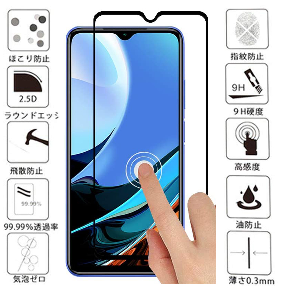 > 黒★送料無料 Xiaomi Redmi 9T 強化ガラスフィルム シャオミ 保護 カバー フィルム シート シール