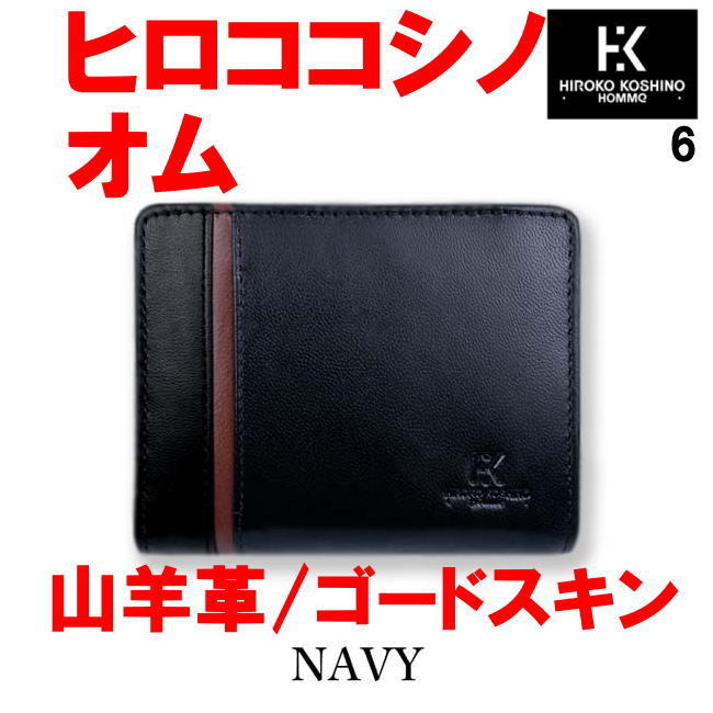 - ネイビー ヒロコ コシノ オム ラウンド 折財布 hks-6 山羊革 ゴードスキン