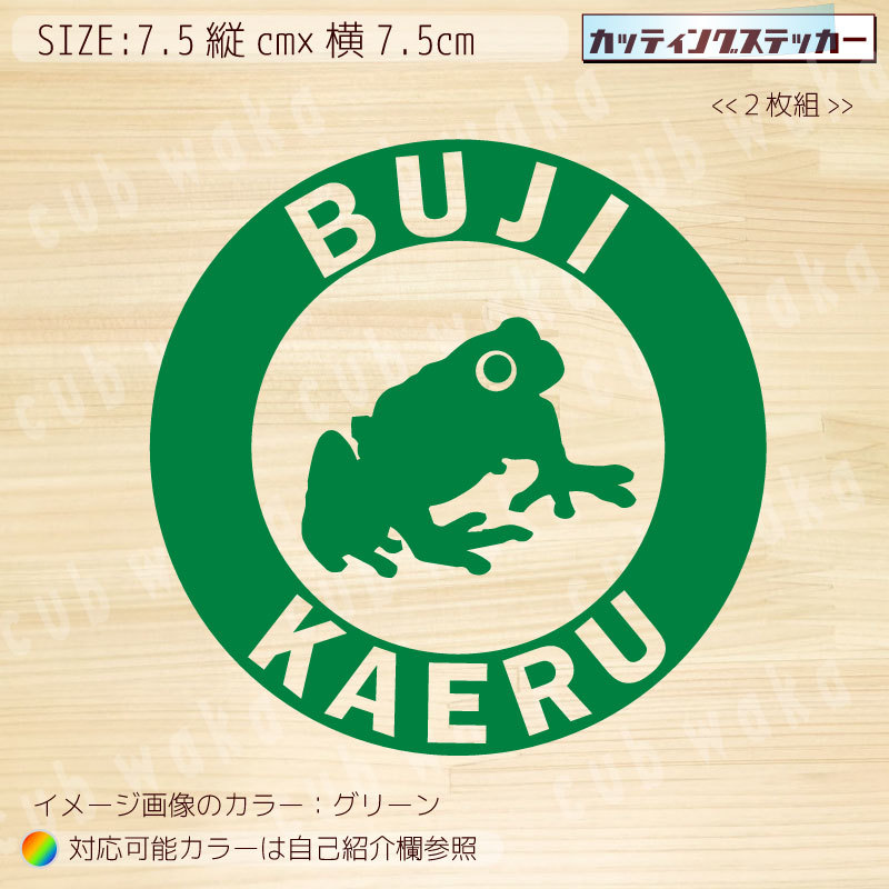 > ブジカエル⑥-2ステッカー2枚組 文字絵柄だけ残るカッティングステッカー・交通安全・安全祈願・車・バイク・カブ・リアガラス