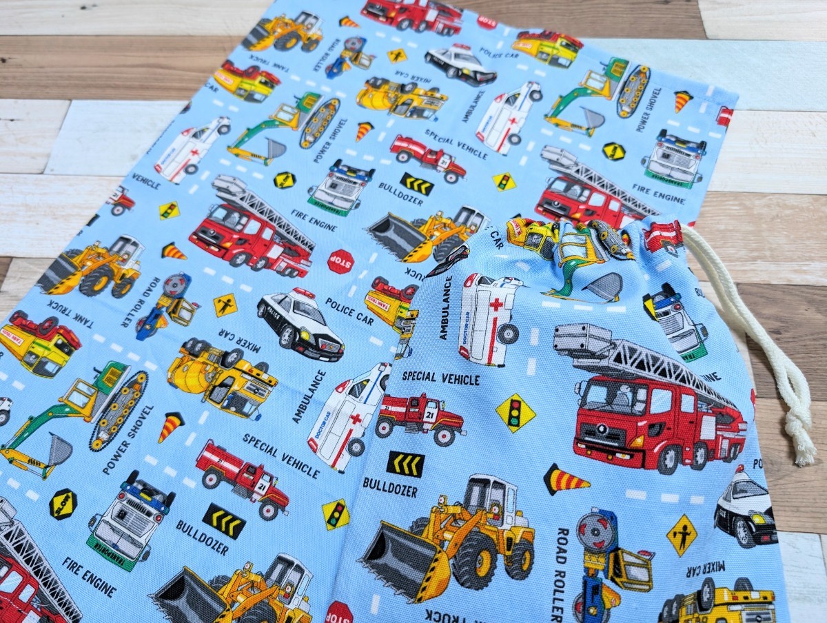 - *40×60cm*ハンドメイド*ランチョンマット・巾着袋給食セット*働く車柄*入園・入学・新学期準備*小学校