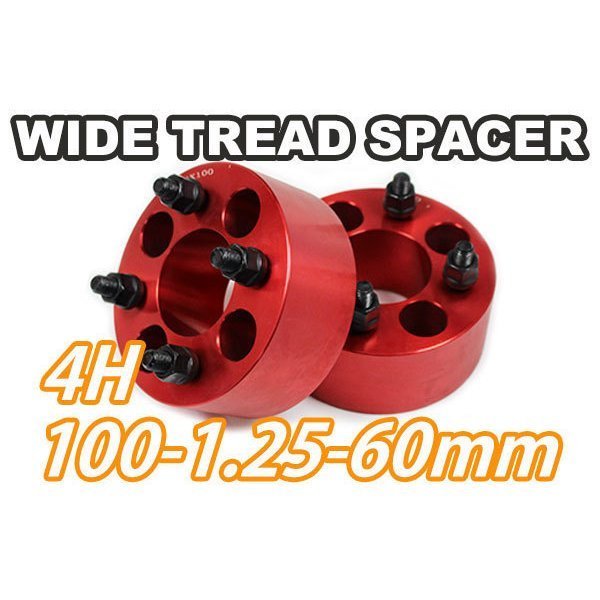 - ワイドトレッドスペーサー 4H 2枚組 PCD100-1.25 60mm 赤 ワイトレ