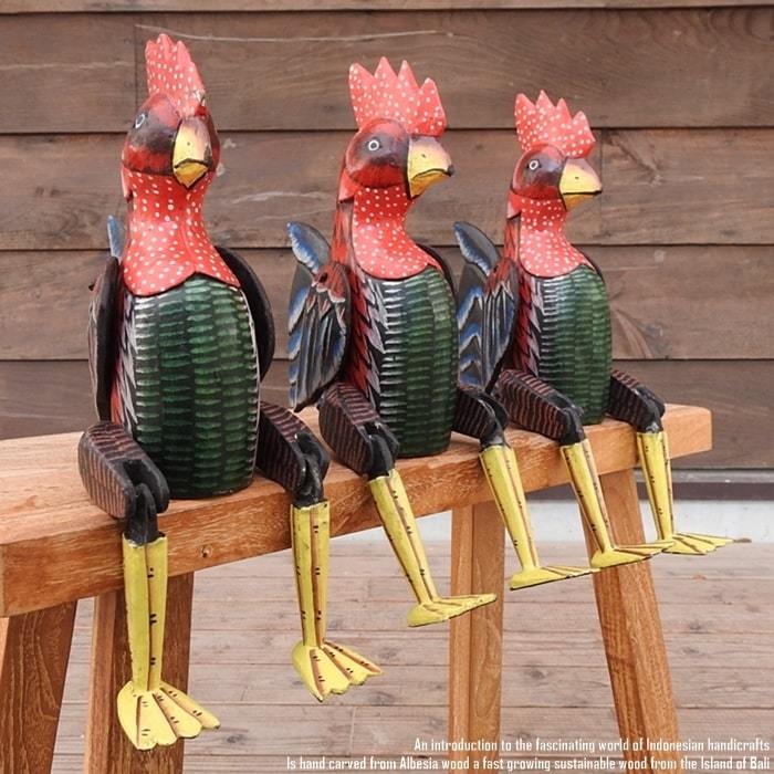 - お座り ニワトリさん [2] Lサイズ ウェルカム人形 鶏 鳥 木製 木彫りの置物 動物インテリア 動物置物 木製オブジェ 動物置物