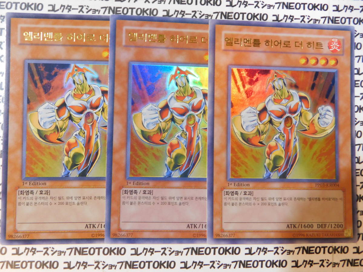 > 韓国語遊戯王 E・HEROザ・ヒート(ウルトラレア PP03 初版)×3枚セット