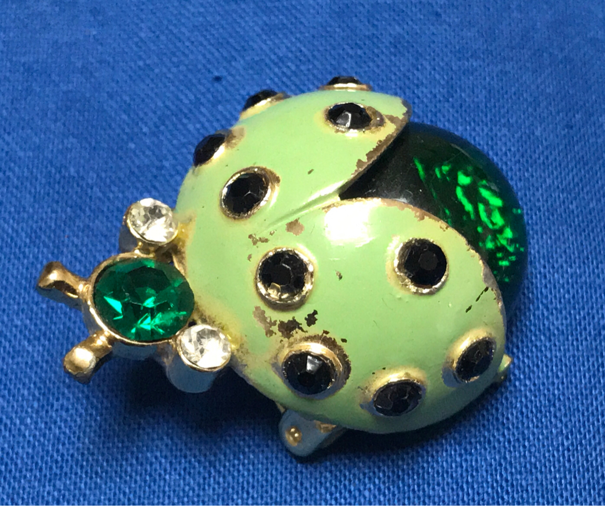 - ブローチ N029 緑てんとう虫★アメリカで購入