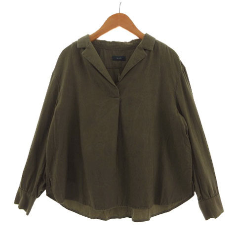 - シップス SHIPS シャツ オープンカラー 長袖 ボックスシルエット コットン混 カーキ レディース