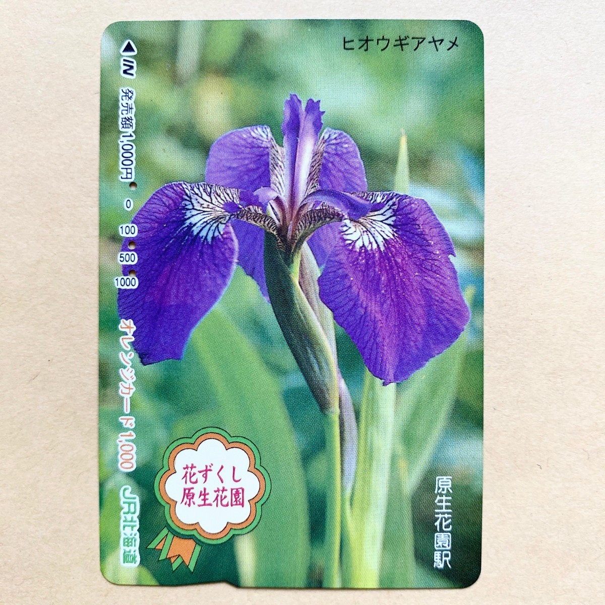 - 【使用済】 花オレンジカード JR北海道 花ずくし原生花園 ヒオウギアヤメ