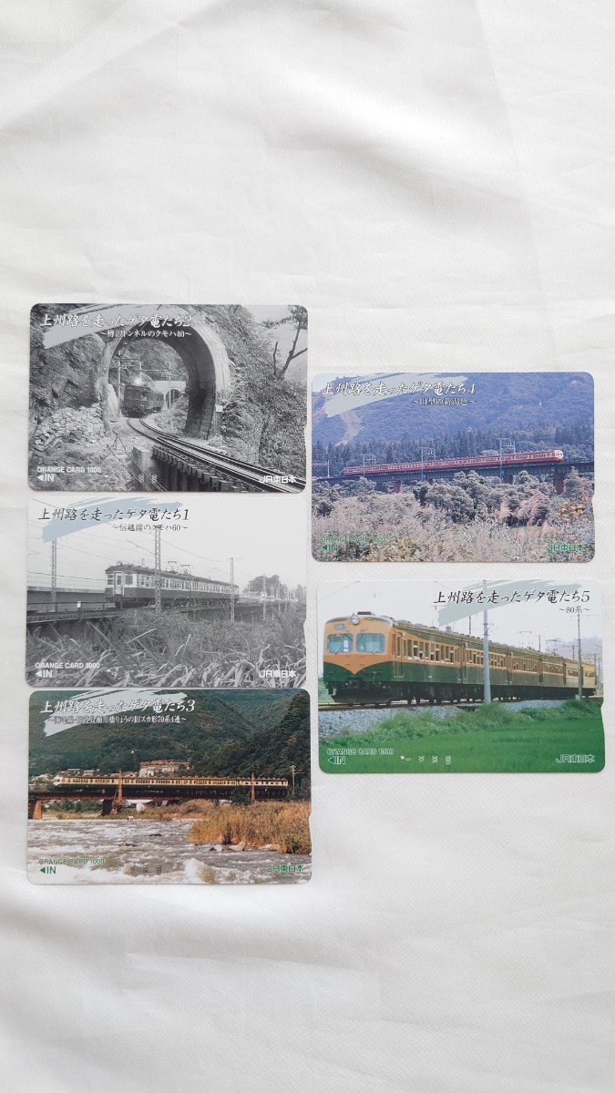 - △JR東日本△上州路を走ったゲタ電たち1-5 クモハ40・80系ほか△記念オレンジカード1穴使用済5枚一括