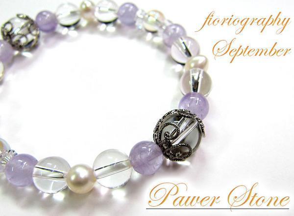 > 天然石 9月誕生花 パワーストーン レディース ブレスレット オーラ水晶×淡水パール×ライトアメジスト (21) 新品