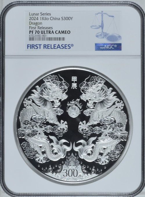 > 【記念貨幣】2024年シルバードラゴン 300元 銀貨 NGC PF70 ULTRA CAMEO 初回出荷 SILVER DRAGON LUNAR SERIES COIN★直径100mm 重1kg M57