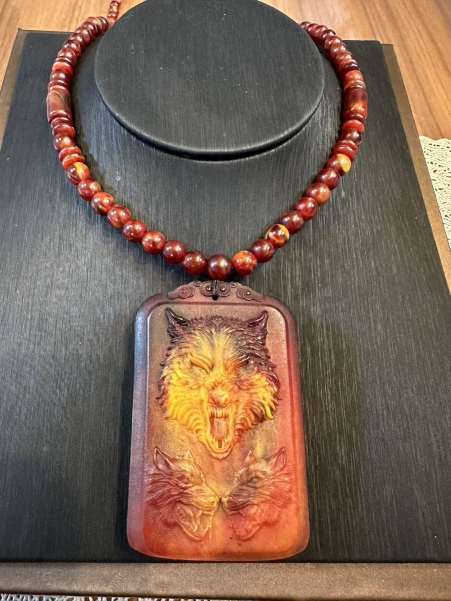 - T-175龍涎香 ネックレス 狼 雕刻ペンダント 開運 お守り