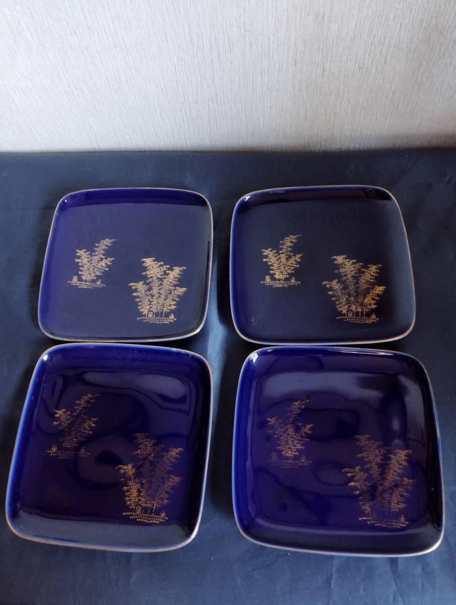 - 深川製磁 銘々皿 瑠璃葡萄 色絵金彩 角銘々皿 宮内庁御用達4枚 箱なし