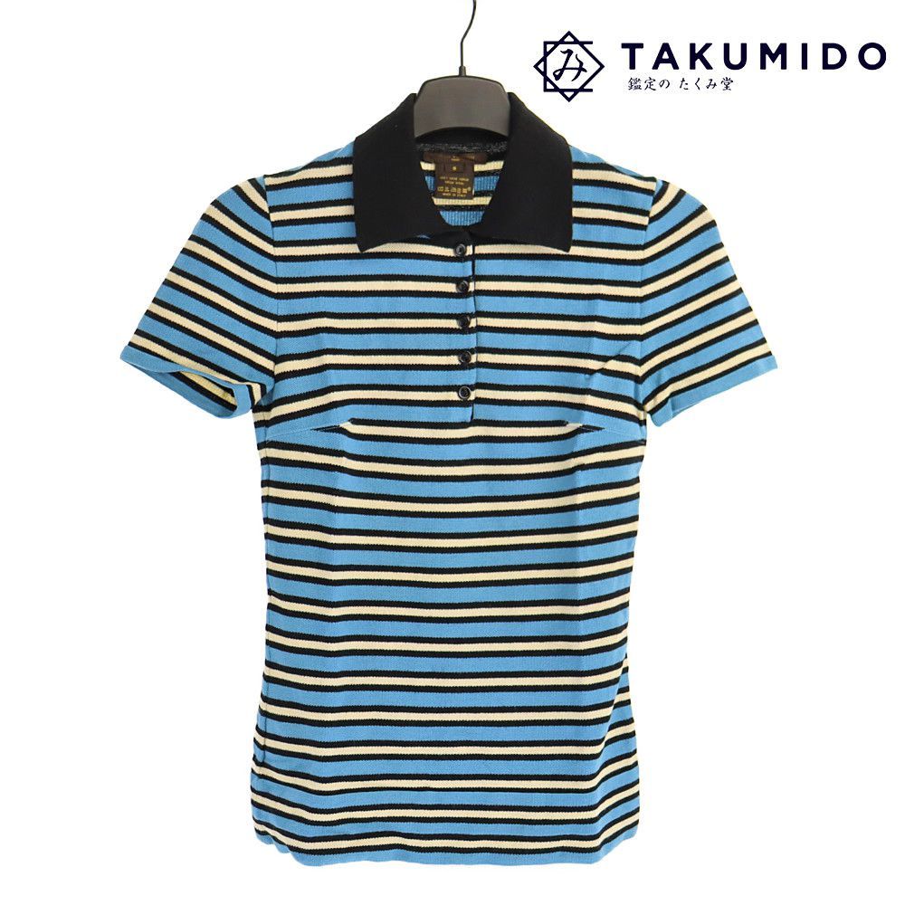 > ルイヴィトン LOUIS VUITTON ニットポロシャツ 半袖 サイズS ボーダー ブルー ブラック ホワイト バージンウール 中古AB 275368