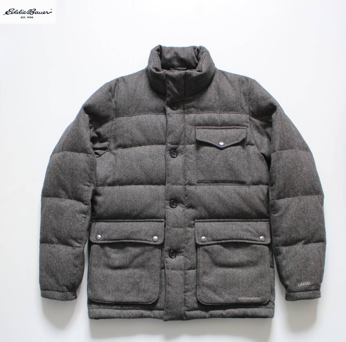 - 【 Eddie Bauer エディーバウアー 】EB650 ヘリンボーン ウールツイード ダウンジャケット XS/日本サイズS グレー 01 9538 ブルゾン