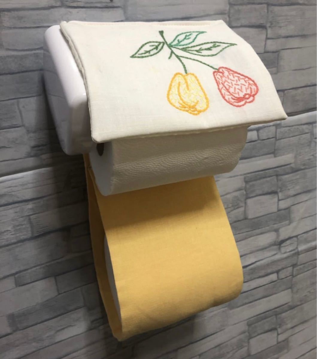 - 手刺繍 トイレットペーパーホルダーカバー ハンドメイド 花 ペーパーホルダーカバー 刺繍