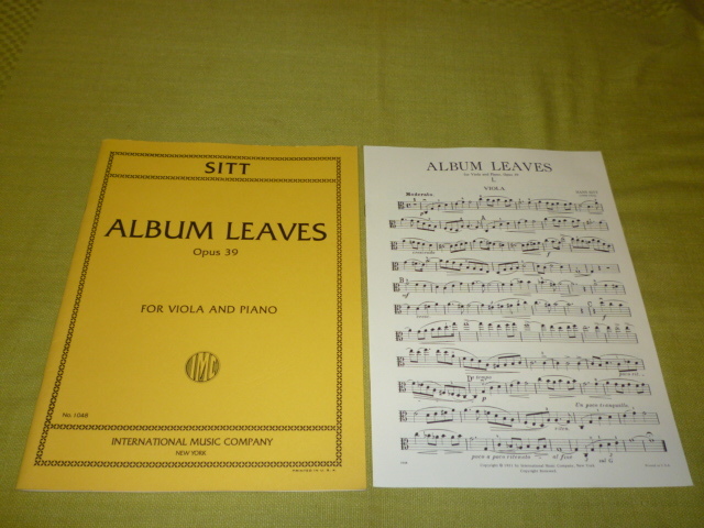 - ヴィオラ ピアノ 楽譜 ALBUM LEAVES Opus39 FOR VIOLA AND PIANO SITT 洋書