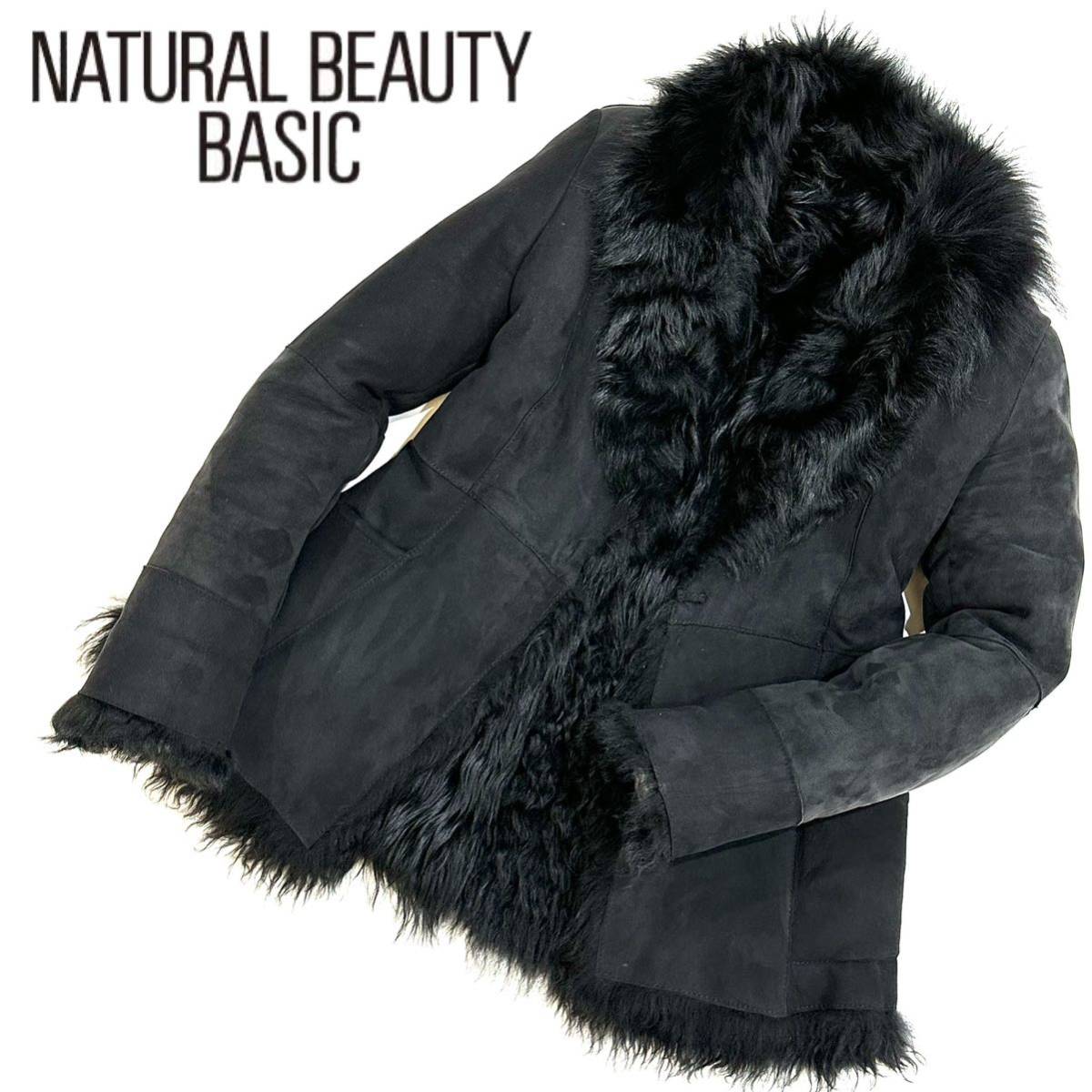 > NATURAL BEAUTY BASIC ナチュラルビューティーベーシック 羊革 シープスキン ムートン ジャケット(S)ブラック レディース アウター
