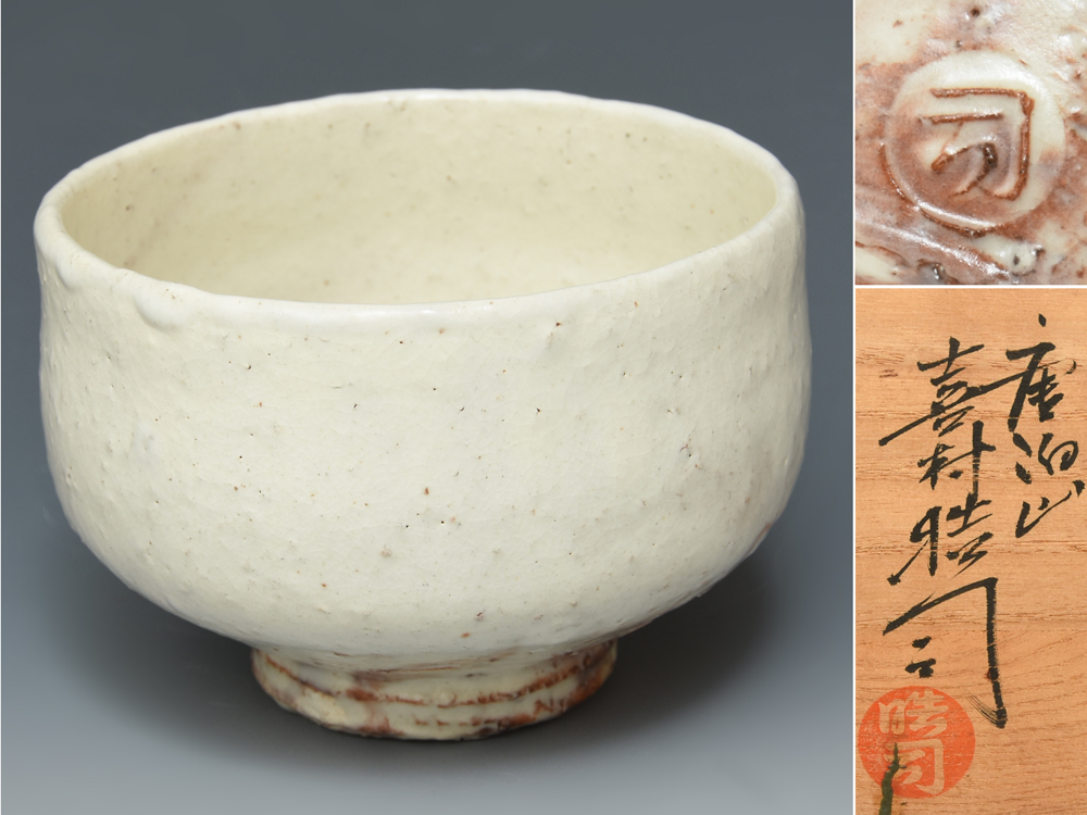 > 唐泊山窯 喜村晧司(造)萩焼茶碗 共箱 共布 茶道具 陶磁器 現代工芸 z6270o