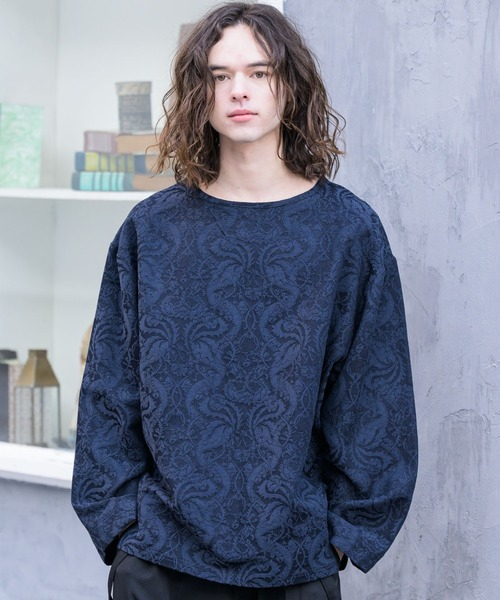 - CASPER JOHN キャスパージョン ペイズリーカットソー ジャガード織 レーヨン混 NVY サイズL