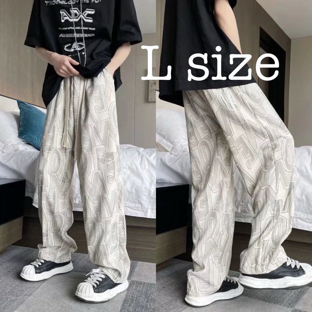 - ボトムス ワイドパンツ ルーズパンツ フレアパンツ ワイドレッグパンツ 英字柄 メンズ レディース ユニセックス ホワイト 白 L