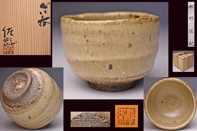 > 水野佐紀 ★ ぐい呑 ★ 共箱共布栞 ★ 常滑焼 ★ 藁灰釉タイプ ★ 灰釉 ★ 渋めの色合いですが艶ありの良作の酒器