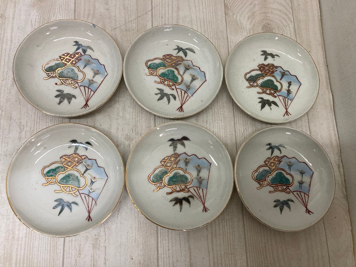 > ma☆i時代物 大正~昭和 色絵皿 アンティーク 小皿 鶴 松 竹 バラ6皿セット多様鉢 古い 陶器