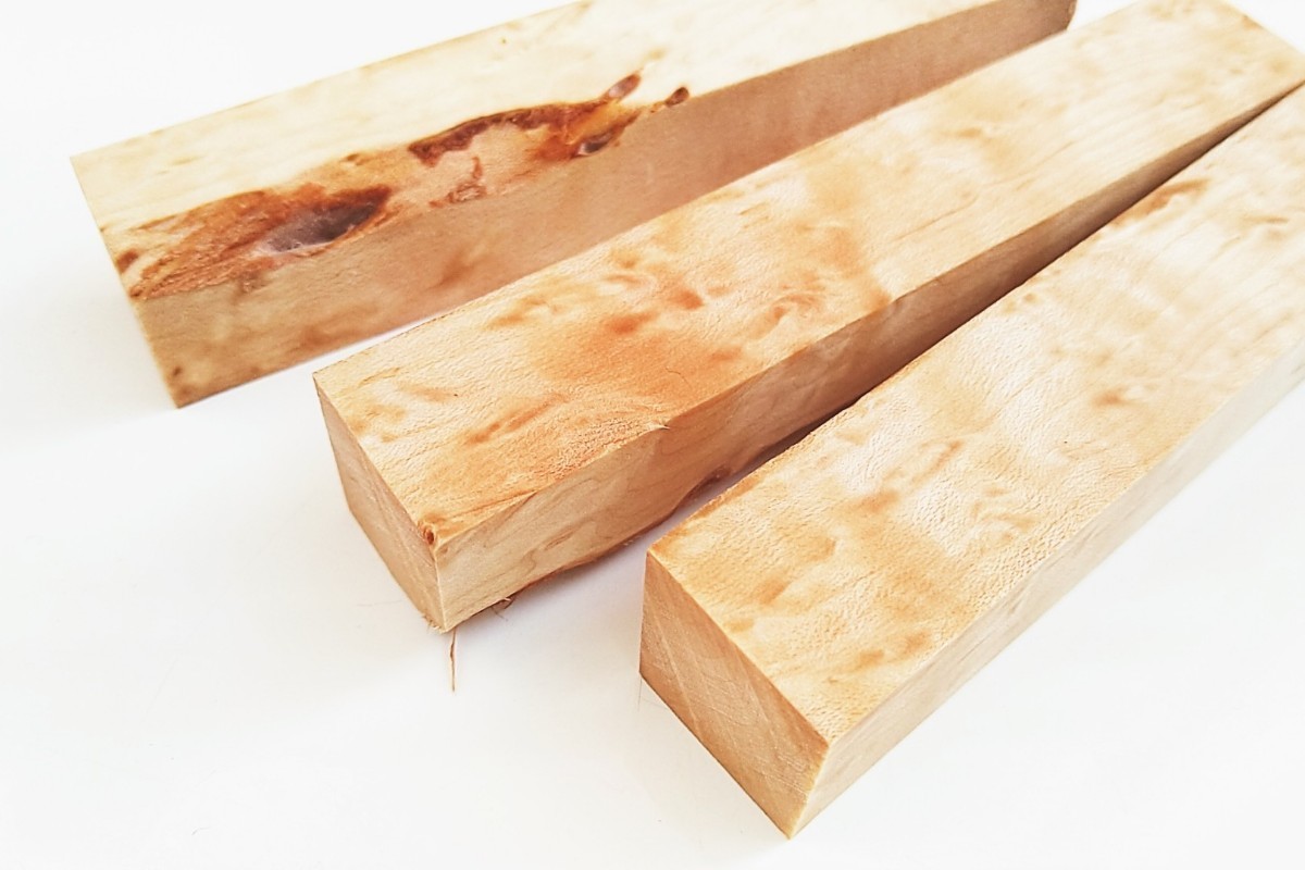 - ◆楓 カエデ 杢あり 角材◆ ペンブランク ハンドル材等◆ 120mm×〜22mm×〜20mm ① 3本セット◆