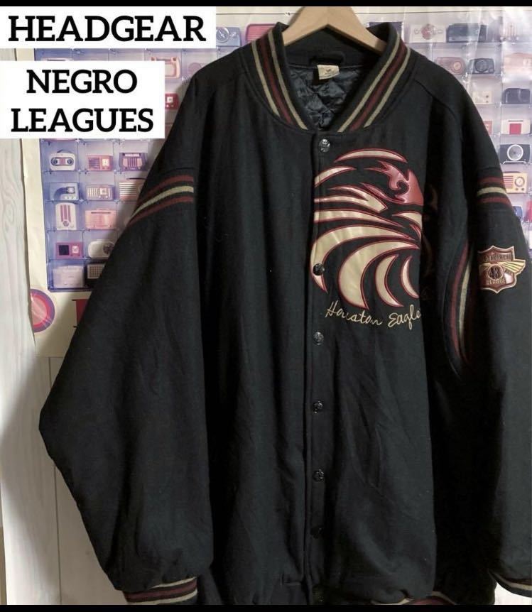 - 超希少90s HEADGEAR NEGRO LEAGUES Baseball Museum NLBMワッペンスタジャンビッグサイズ バーシティジャケットヘッドギアニグロリーグ6XL