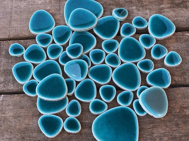 - 綺麗な貫入グリーン 玉石タイル モザイクタイル 200g入り DIYにどうぞ T-01