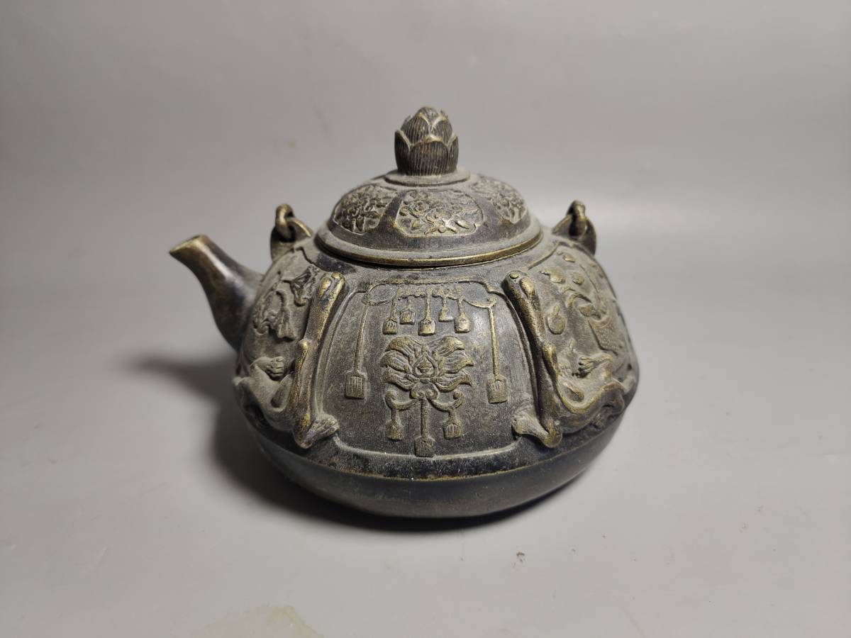 - 蔵友旧蔵出 銅製 花卉紋 提梁酒壺 密宗密教 供養品 仏教美術品zz