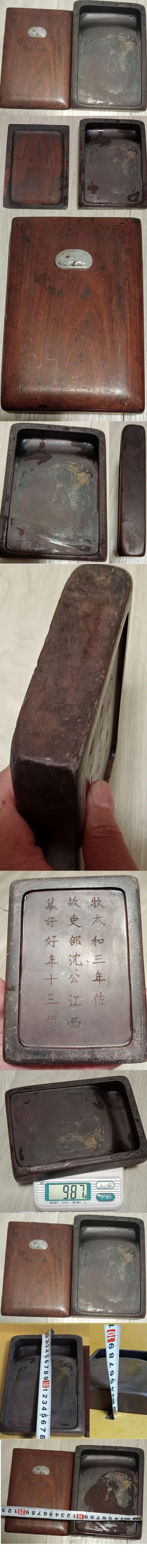 中国の古硯 老坑 唐詩彫 端渓硯 黄花梨 蓋 和田玉 端硯 硯台 硯臺 大型 大西洞 氷紋 青花 金線 古硯