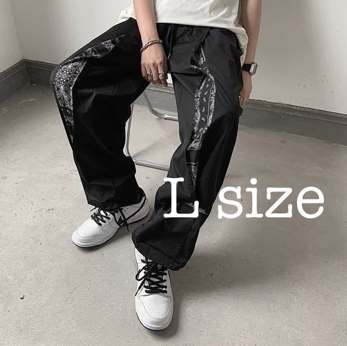 - イージーパンツ ペイズリー ワイドパンツ ストレートパンツ ボトムス ブラック 黒 L
