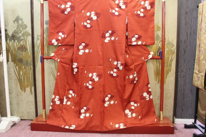 - きもの今昔6429 合繊のきもの 広衿袷仕立て小紋のきもの ポリエステル100% 身丈159cm