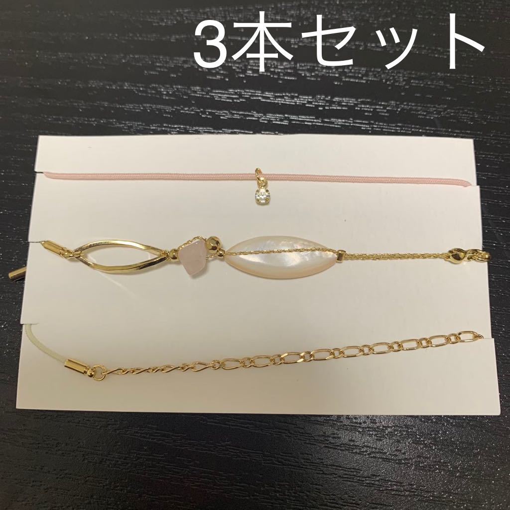 - 桜 ベビーピンク ラインストーン チェーン ブレスレット 3本セット