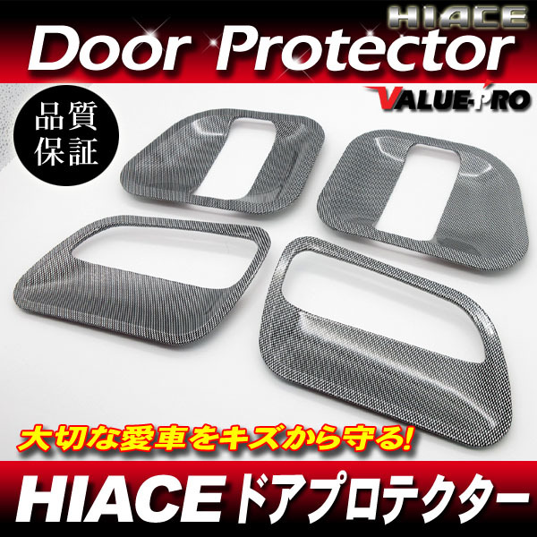 > ドアキズ防止 カーボン調 ドアプロテクター ドアノブカバ- ◆ ハイエース 200系 1型 2型 3型 4型 5型 OK